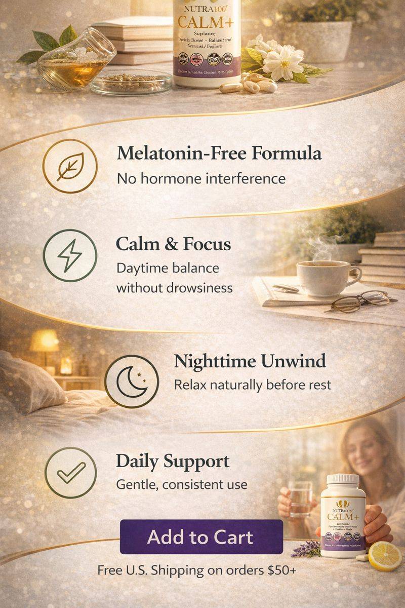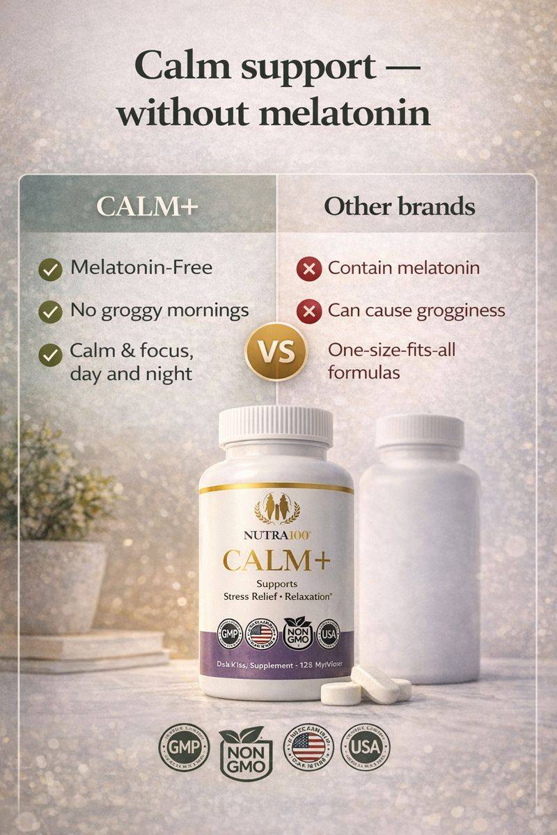 6835506397310187483185317{"id":10187483185317,"title":"Calm+","handle":"calm","description":"\u003cp data-end=\"989\" data-start=\"682\"\u003eCALM+ is a premium supplement designed for people living with constant stress, mental overload, sleep issues or emotional fatigue.\u003cbr data-end=\"815\" data-start=\"812\"\u003eIt combines B-complex vitamins, Vitamin C, essential minerals and calming herbs to support the nervous system, improve rest and promote more stable energy throughout the day.\u003c\/p\u003e\n\u003chr data-end=\"994\" data-start=\"991\"\u003e\n\u003ch3 data-end=\"1024\" data-start=\"996\"\u003e🌟 Key Benefits of CALM+\u003c\/h3\u003e\n\u003cul data-end=\"1457\" data-start=\"1026\"\u003e\n\u003cli data-end=\"1090\" data-start=\"1026\"\u003eHelps \u003cstrong data-end=\"1077\" data-start=\"1034\"\u003ereduce everyday stress and mild anxiety\u003c\/strong\u003e naturally.\u003c\/li\u003e\n\u003cli data-end=\"1159\" data-start=\"1091\"\u003eSupports a \u003cstrong data-end=\"1134\" data-start=\"1104\"\u003emore stable, balanced mood\u003c\/strong\u003e and less irritability.\u003c\/li\u003e\n\u003cli data-end=\"1223\" data-start=\"1160\"\u003ePromotes \u003cstrong data-end=\"1195\" data-start=\"1171\"\u003ebetter sleep quality\u003c\/strong\u003e and deeper rest at night.\u003c\/li\u003e\n\u003cli data-end=\"1299\" data-start=\"1224\"\u003eSupports \u003cstrong data-end=\"1278\" data-start=\"1235\"\u003emental clarity, focus and concentration\u003c\/strong\u003e at work or school.\u003c\/li\u003e\n\u003cli data-end=\"1386\" data-start=\"1300\"\u003eHelps maintain \u003cstrong data-end=\"1341\" data-start=\"1317\"\u003eclean, steady energy\u003c\/strong\u003e during the day (without harsh stimulants).\u003c\/li\u003e\n\u003cli data-end=\"1457\" data-start=\"1387\"\u003eSupports the \u003cstrong data-end=\"1419\" data-start=\"1402\"\u003eimmune system\u003c\/strong\u003e with 500 mg of Vitamin C per serving.\u003c\/li\u003e\n\u003c\/ul\u003e\n\u003chr data-end=\"1462\" data-start=\"1459\"\u003e\n\u003ch3 data-end=\"1517\" data-start=\"1464\"\u003e🧪 Complete Formula per Daily Serving (3 tablets)\u003c\/h3\u003e\n\u003cp data-end=\"1532\" data-start=\"1519\"\u003e\u003cstrong data-end=\"1532\" data-start=\"1519\"\u003eVitamins:\u003c\/strong\u003e\u003c\/p\u003e\n\u003cul data-end=\"1702\" data-start=\"1534\"\u003e\n\u003cli data-end=\"1560\" data-start=\"1534\"\u003eVitamin C – \u003cstrong data-end=\"1558\" data-start=\"1548\"\u003e500 mg\u003c\/strong\u003e\n\u003c\/li\u003e\n\u003cli data-end=\"1702\" data-start=\"1561\"\u003eFull B-Complex: B1, B2, B3, B5, B6, B7 (Biotin), B9 (Folic Acid), B12\u003cbr data-end=\"1635\" data-start=\"1632\"\u003e→ Essential for energy production, mood support and brain function.\u003c\/li\u003e\n\u003c\/ul\u003e\n\u003cp data-end=\"1727\" data-start=\"1704\"\u003e\u003cstrong data-end=\"1727\" data-start=\"1704\"\u003eEssential Minerals:\u003c\/strong\u003e\u003c\/p\u003e\n\u003cul data-end=\"1868\" data-start=\"1729\"\u003e\n\u003cli data-end=\"1753\" data-start=\"1729\"\u003eCalcium – \u003cstrong data-end=\"1751\" data-start=\"1741\"\u003e600 mg\u003c\/strong\u003e\n\u003c\/li\u003e\n\u003cli data-end=\"1868\" data-start=\"1754\"\u003eMagnesium – \u003cstrong data-end=\"1778\" data-start=\"1768\"\u003e300 mg\u003c\/strong\u003e\u003cbr data-end=\"1781\" data-start=\"1778\"\u003e→ Important for muscle relaxation, nervous system balance and neurotransmitter support.\u003c\/li\u003e\n\u003c\/ul\u003e\n\u003cp data-end=\"1900\" data-start=\"1870\"\u003e\u003cstrong data-end=\"1900\" data-start=\"1870\"\u003eNatural Anti-Stress Blend:\u003c\/strong\u003e\u003c\/p\u003e\n\u003cul data-end=\"1955\" data-start=\"1902\"\u003e\n\u003cli data-end=\"1914\" data-start=\"1902\"\u003eValerian\u003c\/li\u003e\n\u003cli data-end=\"1928\" data-start=\"1915\"\u003eChamomile\u003c\/li\u003e\n\u003cli data-end=\"1946\" data-start=\"1929\"\u003ePassionflower\u003c\/li\u003e\n\u003cli data-end=\"1955\" data-start=\"1947\"\u003eHops\u003c\/li\u003e\n\u003c\/ul\u003e\n\u003cp data-end=\"2055\" data-start=\"1957\"\u003eThese herbs have been traditionally used to support calmness, relaxation and better sleep quality.\u003c\/p\u003e\n\u003chr data-end=\"2060\" data-start=\"2057\"\u003e\n\u003ch3 data-end=\"2094\" data-start=\"2062\"\u003e🛡 Premium Quality Standards\u003c\/h3\u003e\n\u003cul data-end=\"2431\" data-start=\"2096\"\u003e\n\u003cli data-end=\"2154\" data-start=\"2096\"\u003eManufactured in an \u003cstrong data-end=\"2151\" data-start=\"2117\"\u003eNSF and SQF certified facility\u003c\/strong\u003e.\u003c\/li\u003e\n\u003cli data-end=\"2231\" data-start=\"2155\"\u003eTested using \u003cstrong data-end=\"2178\" data-start=\"2170\"\u003eHPLC\u003c\/strong\u003e and \u003cstrong data-end=\"2193\" data-start=\"2183\"\u003eICP-MS\u003c\/strong\u003e for high-precision quality control.\u003c\/li\u003e\n\u003cli data-end=\"2287\" data-start=\"2232\"\u003e\n\u003cstrong data-end=\"2253\" data-start=\"2234\"\u003eNo heavy metals\u003c\/strong\u003e, no harmful bacteria, no molds.\u003c\/li\u003e\n\u003cli data-end=\"2340\" data-start=\"2288\"\u003e\u003cstrong data-end=\"2338\" data-start=\"2290\"\u003eGluten-free, dairy-free, soy-free, nut-free.\u003c\/strong\u003e\u003c\/li\u003e\n\u003c\/ul\u003e\n\u003chr data-end=\"2436\" data-start=\"2433\"\u003e\n\u003ch3 data-end=\"2474\" data-start=\"2438\"\u003e👥 Who is CALM+ recommended for?\u003c\/h3\u003e\n\u003cp data-end=\"2495\" data-start=\"2476\"\u003eCALM+ is ideal for:\u003c\/p\u003e\n\u003cul data-end=\"2886\" data-start=\"2497\"\u003e\n\u003cli data-end=\"2550\" data-start=\"2497\"\u003eAdults dealing with \u003cstrong data-end=\"2547\" data-start=\"2519\"\u003ework or emotional stress\u003c\/strong\u003e.\u003c\/li\u003e\n\u003cli data-end=\"2601\" data-start=\"2551\"\u003ePeople with \u003cstrong data-end=\"2598\" data-start=\"2565\"\u003emild anxiety or daily tension\u003c\/st